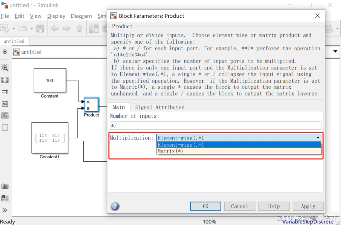 (4)当输入量中有矩阵/向量时,需要考虑按元素进行矩阵点乘运算(Element-wise),还是按线性代数运算规则进行矩阵乘法运算(Matrix),不管采用哪种运算,都需要注意矩阵/向量维数的匹配。