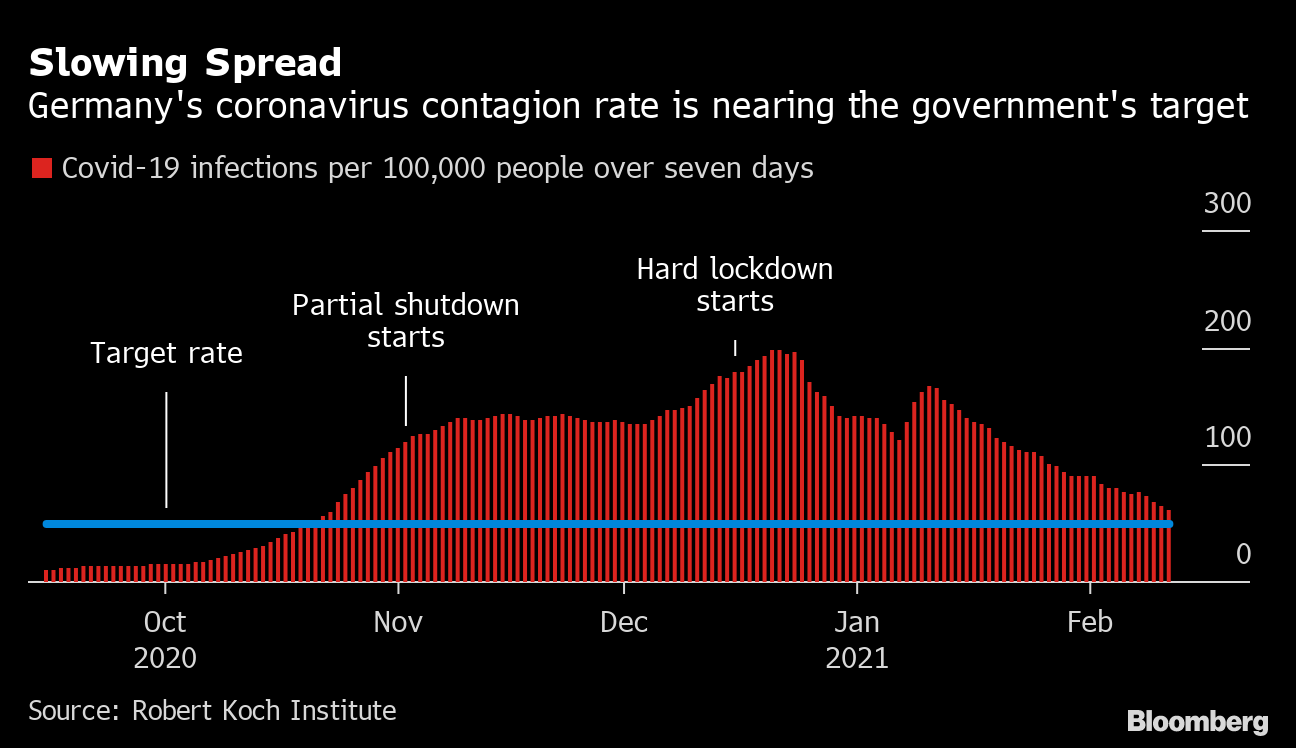 German authorities agreed this week to loosen some virus restrictions and open a pathway to a return to some semblance of normality after months of stringent curbs. With elections looming and Merkel’s tenure coming to an end, political positioning has played a role in Germany’s efforts to contain the disease.
