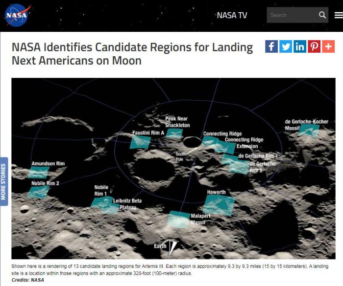 原标题:NASA公布美国下一次登月潜在着陆区 “一个完全不同的地方”