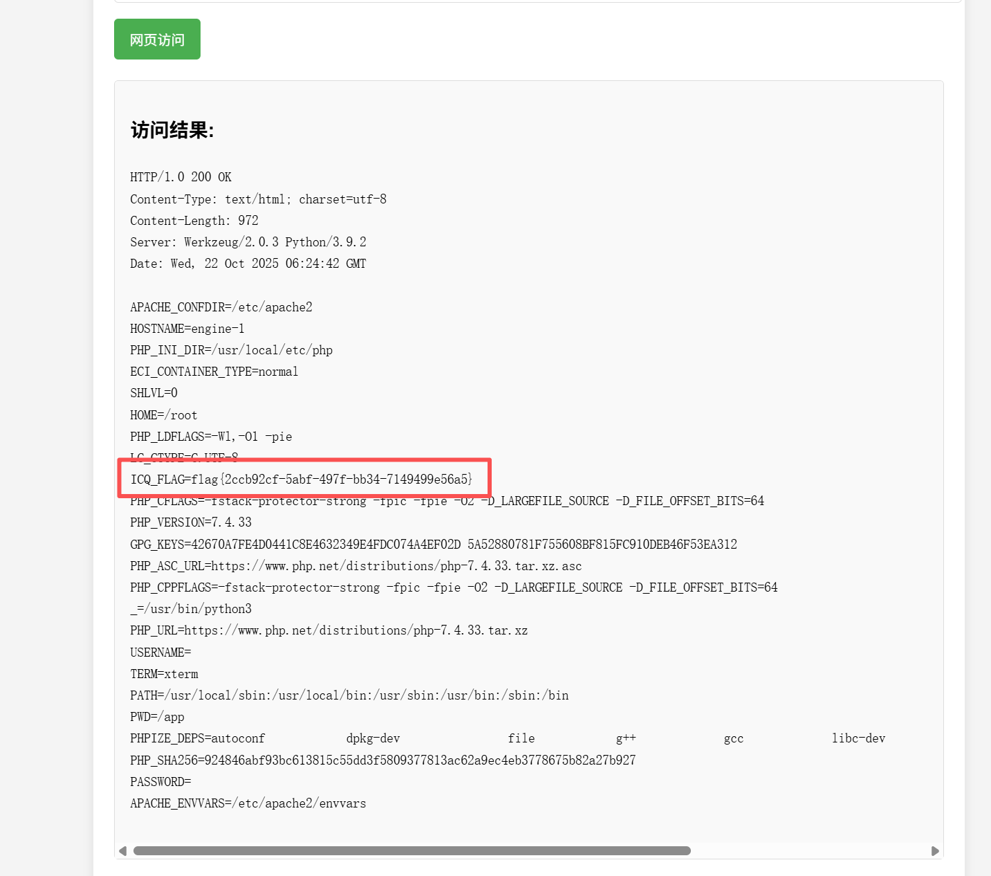 成功获得flag:flag{2ccb92cf-5abf-497f-bb34-7149499e56a5}
