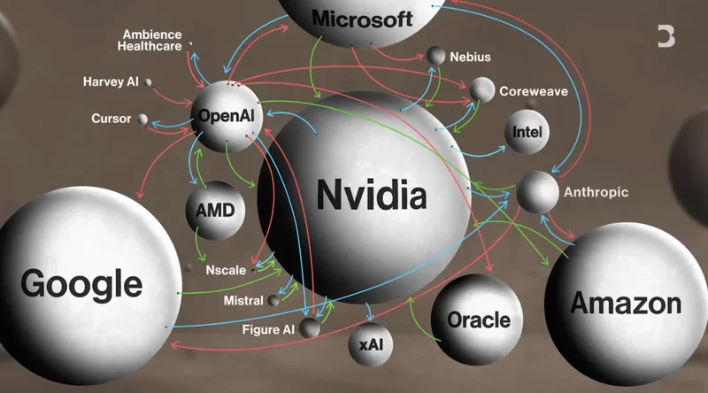 OpenAI 在过去一年里与英伟达、甲骨文、微软、AMD、CoreWeave、Google 等公司,达成了极其复杂的连锁交易。在这些交易当中,OpenAI 或许能够获得一些周转资金,或是基础设施费用的减免。