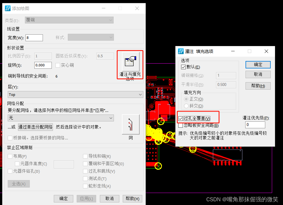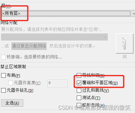 注意:每一层的铺铜都得选,如果铺铜时第一块是勾选上的,后面都是勾选上的,如果第一块没有勾选上,后面都得去勾选,所以第一次铺铜是可以先看看勾选上。