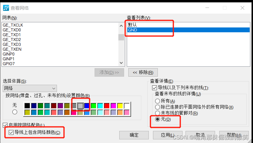 可以先从CPU部分开始布局,也可以先从外围接口布局。在布局时可以开启25设计格点和显示格点(比较容易对齐)。同时也要设置一下网络颜色。