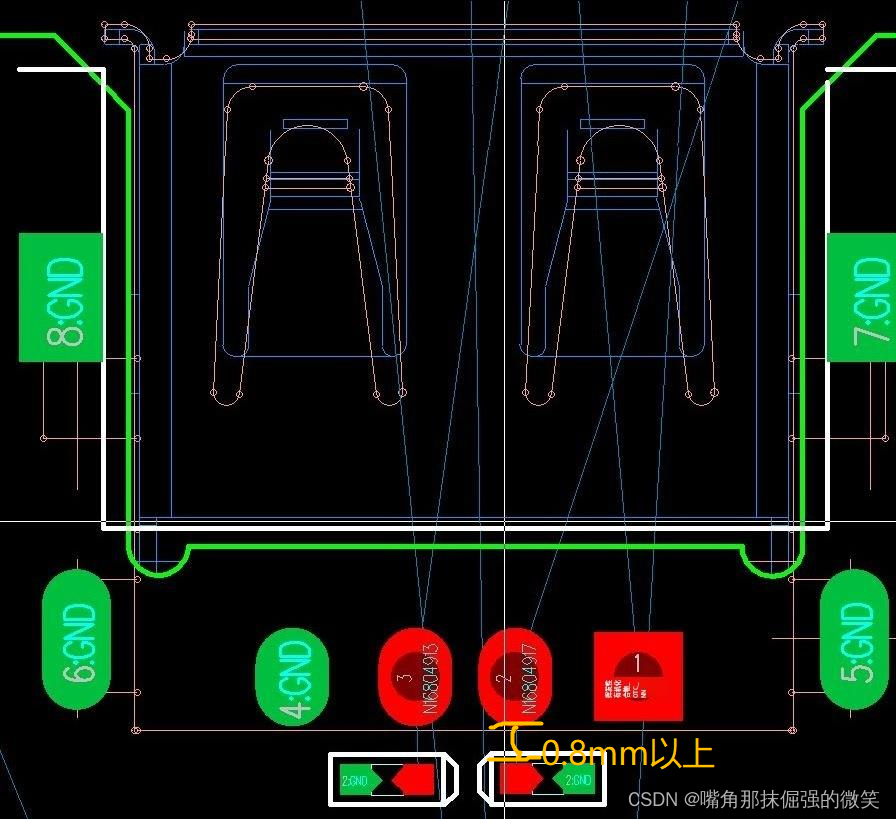 BGA为0.8,一般设置过孔为8/16(钻孔8mil)。