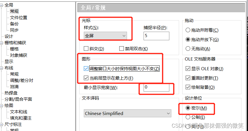 - 设置栅格(一般在密尔单位下设置栅格,设计栅格和显示栅格设置成一样的,一般5密尔)