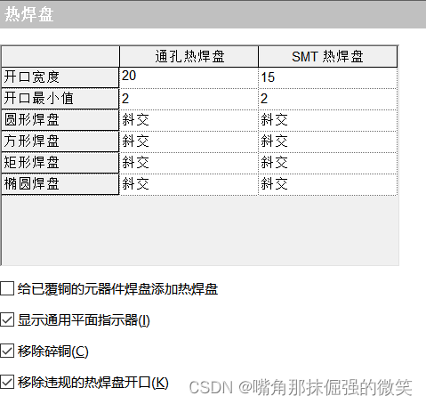灌铜操作之前先设置一下热焊盘的开口宽度(也就是十字连接时连接焊盘线的宽度,一般通孔热焊盘和SMT热焊盘开口宽度为15mil)