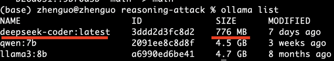 如下图所示,我推荐的deepseek-coder编程大模型,参数尺寸只有776M,相比于通用大模型如qwen:7b和llama3:8b都有近5G的参数规模,可以说已经轻量级到极限: