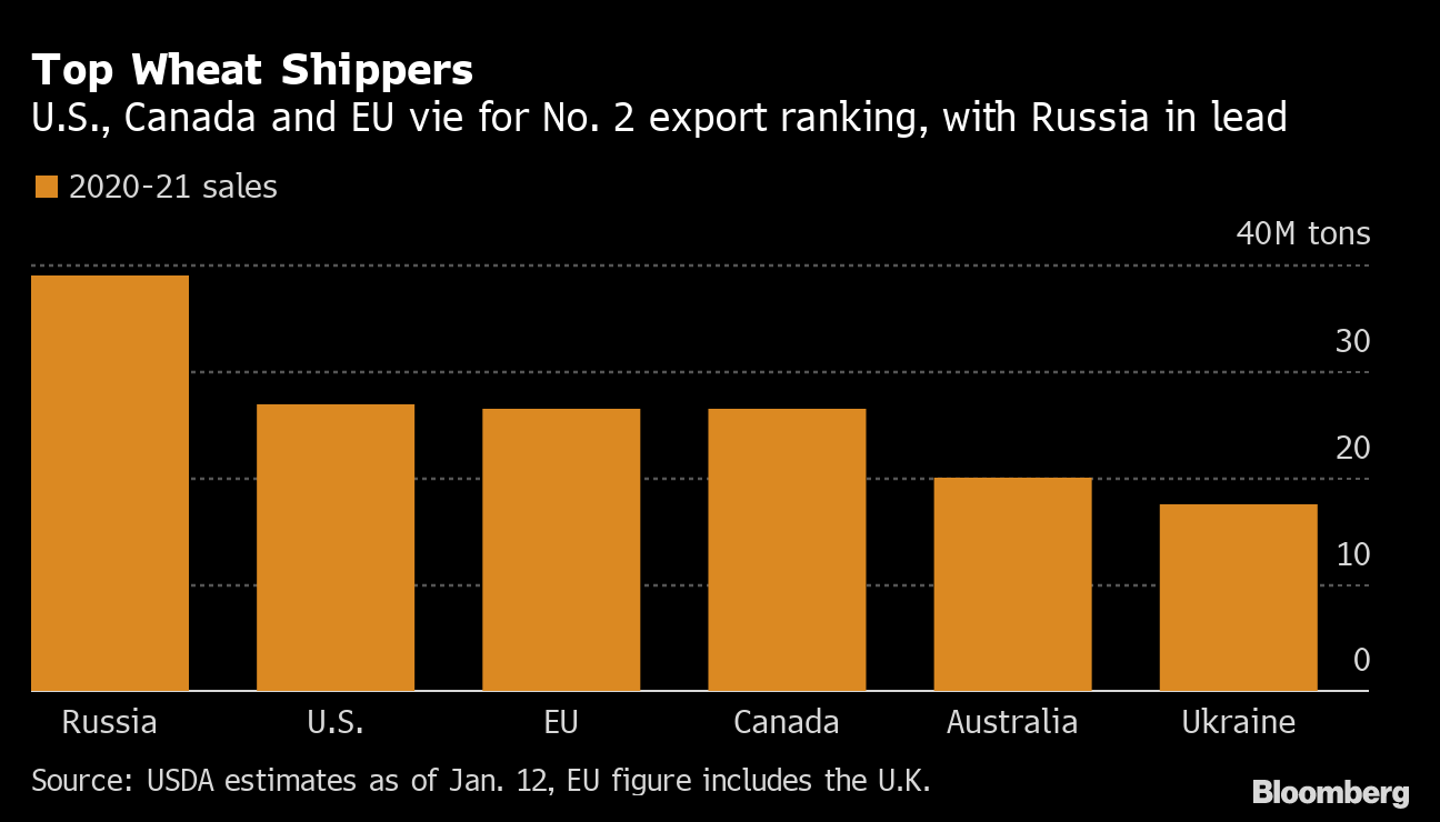 “I’m sure everyone will turn to the EU first, but the EU just doesn’t have the wheat available to export,” AgResource President Dan Basse said by phone. “There’s only one place that people can really turn to for wheat -- North America.”