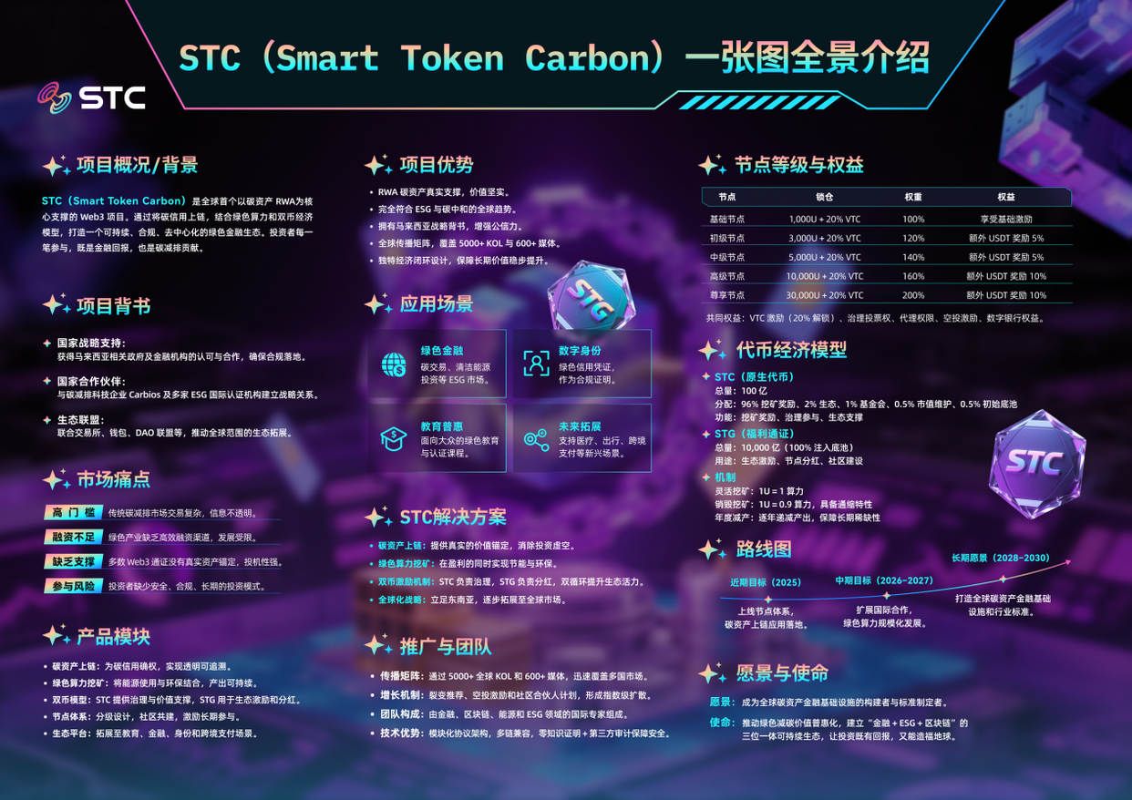 本次大会也将作为STC全球生态系统公测启动仪式,全面展示其“绿色资产上链 + RWA确权 + 算力激励 + 全球流通”的技术与商业闭环能力。