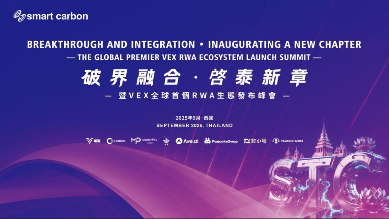 由Smart Carbon (STC) Foundation联合VEX RWA交易平台发起的「破界融合 · 启泰新章」大会,将于9月8日至11日在泰国举行,并于9月9日正式举行主论坛。此次峰会被誉为“绿色资产RWA化的里程碑级事件”,汇聚碳中和、金融科技、Web3、政策研究等多领域领袖,是一次前所未有的行业融合实验。