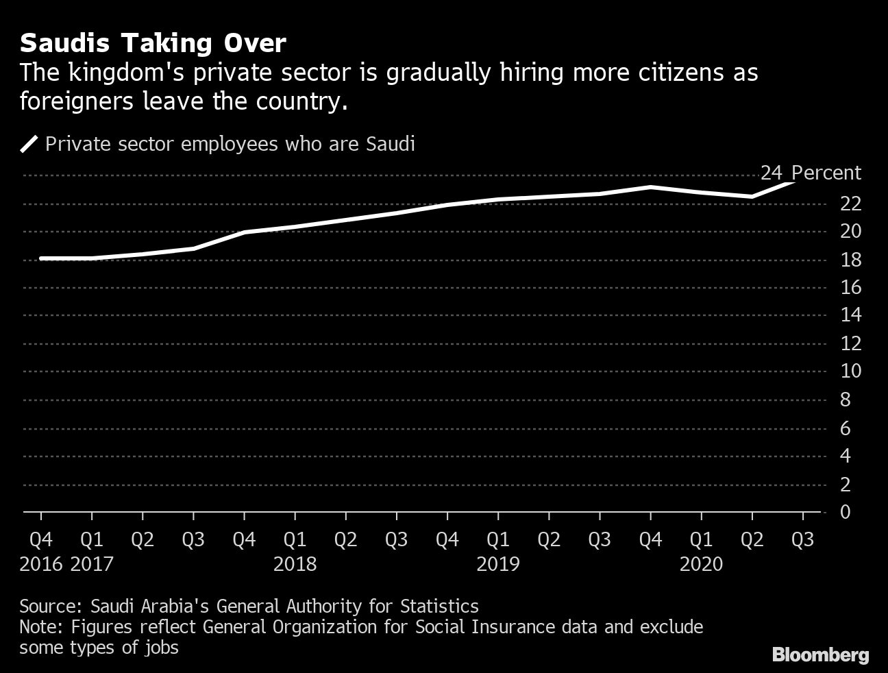 Note: Data is from the kingdom's 3Q 2020 labor market report, the most recent available
