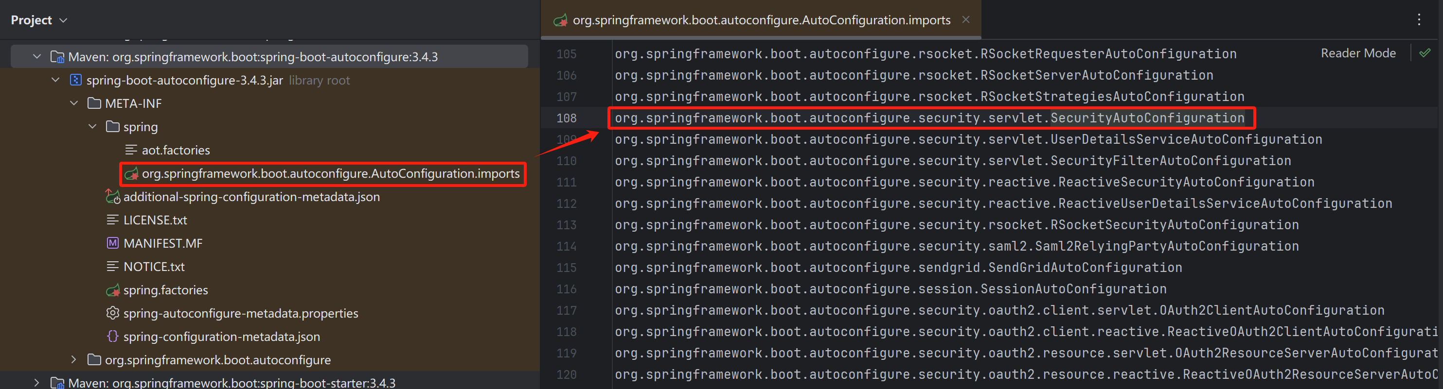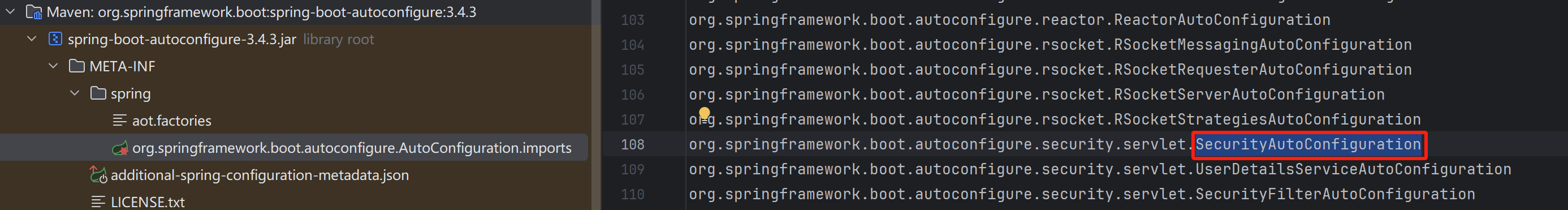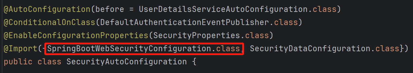然后在 Spring Boot 自动装配导入的类中,有一个 SecurityAutoConfiguration