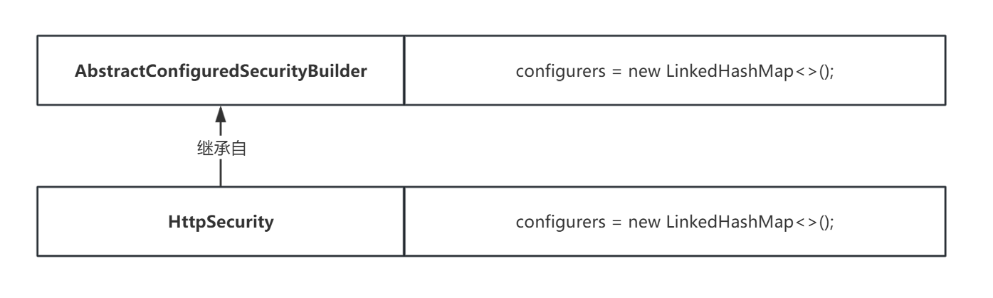 首先,HttpSecurityConfiguration 生成 HttpSecurity 实例的时候,往 HttpSecurity 的 LinkedHashMap configurers(该属性继承自 AbstractConfiguredSecurityBuilder) 加入13个 Configurer。这些 Configurer 是对应 Filter 的装配器。