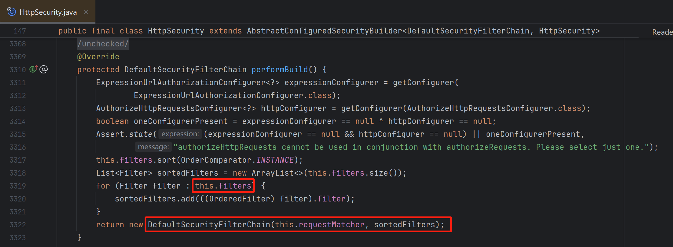 HttpSecurity.filters --> DefaultSecurityFilterChain.filters