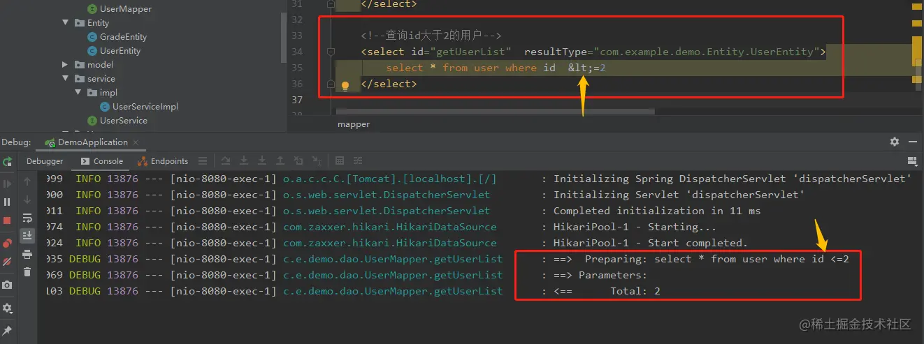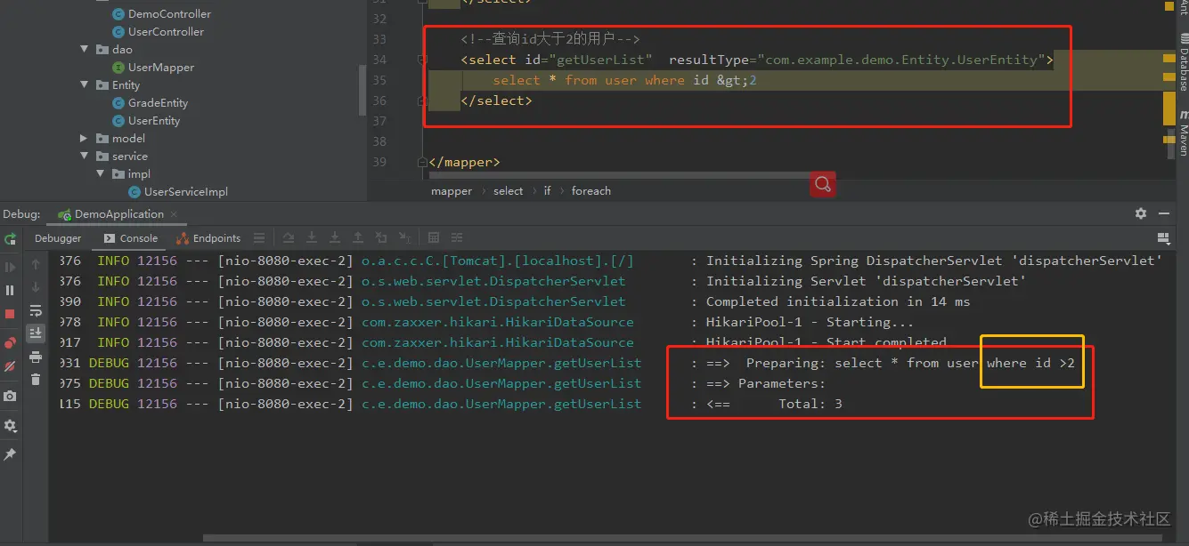 则在UserMapper.xml 中,得这么写