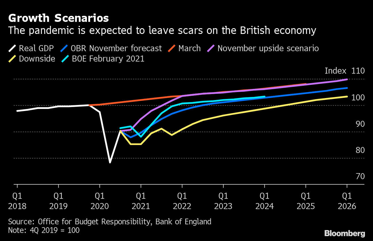 The chancellor “has to signal how he will deal with the likely Covid fallout of higher unemployment, more businesses going under and not paying back their loans, and plugging the hole in the public finances,” said Nicky Morgan, a member of the House of Lords for the ruling Conservative Party and former Treasury minister. “He may find the next year much harder than the last.”
