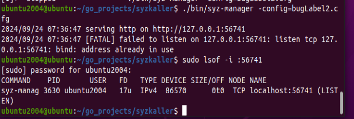 终止syzkaller后,需要kill syz-manage这个进程才能再次启动syzkaller