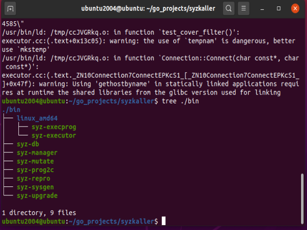 make -j4 # 重新编译syzkaller,耗时约7分钟,成功后能找到vmlinux和bzImage,参考之前的配置流程