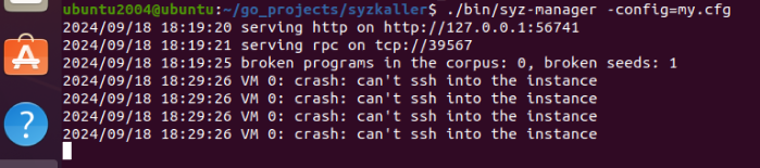 报错7(终端报错):Syzkaller:broken programs in the corpus: 0, broken seeds: 1