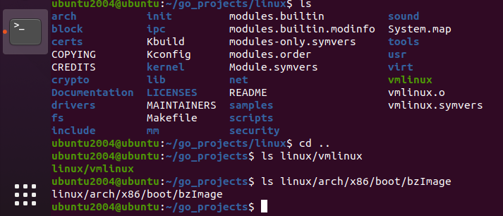 下载完成后会自动在当前路径(go_project文件夹)下创建新目录linux用于存放内核编译结果,也可以在末尾指定存放的路径文件夹,需采用以下语句提前建立文件夹。