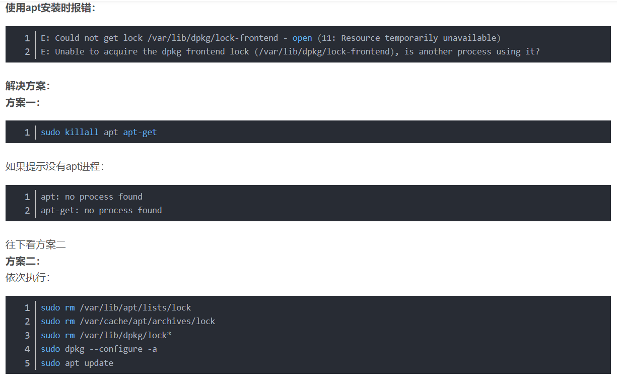 报错5:安装时显示进程占用,另一个进程正在使用 dpkg