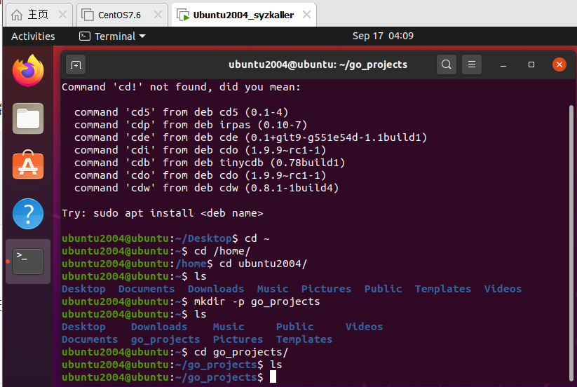 在用户ubuntu2004下的/home/ubuntu2004/路径下创建go_projects文件夹