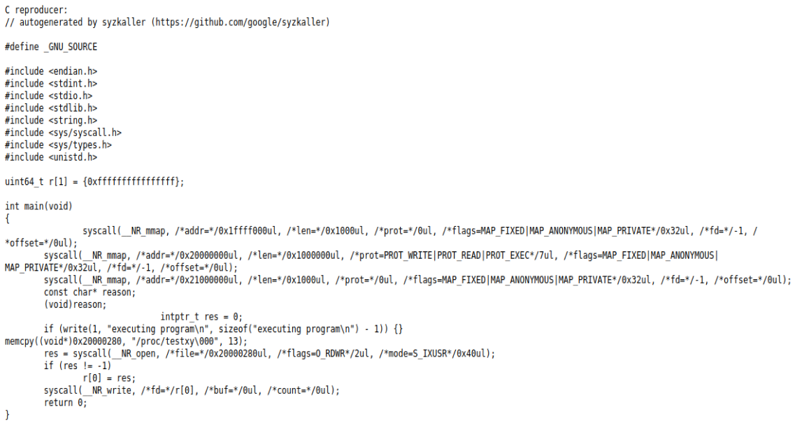 ./linux_amd64/syz-execprog -executor=./linux_amd64/syz-executor -repeat=0 -procs=16 -cover=0 crash-log