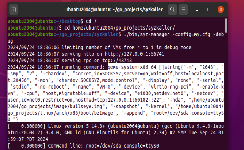 虚拟机B 主要用于运行模糊测试(即 syzkaller 将生成测试用例并在虚拟机B中运行),并捕获测试结果和覆盖率信息。