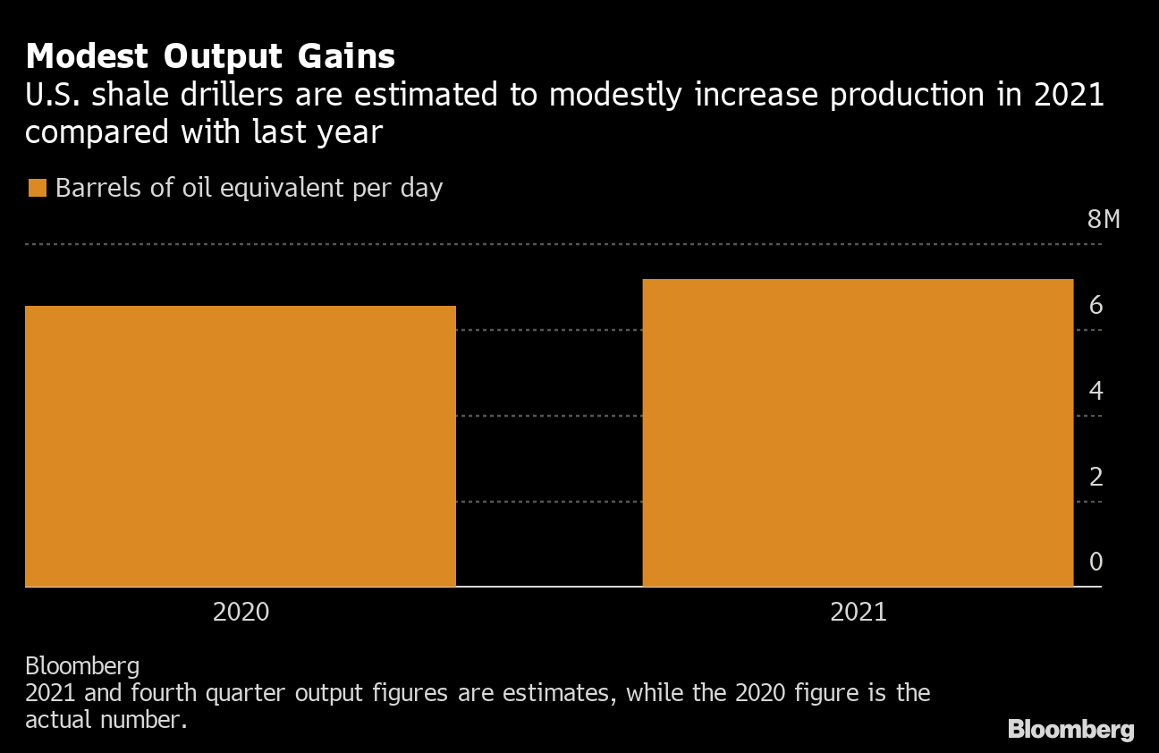 U.S. shale drillers are estimated to modestly increase production in 2021 compared with last year