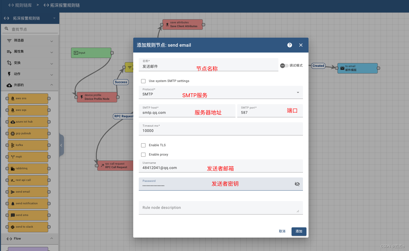 当设备报警的时候,运维人员无法时刻都盯着设备查看是否有报警信息,为此我们需要通过邮件或者短信来通知客户,当前的设备发生了报警,请及时前往处理