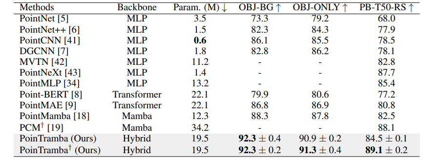 PoinTramba:这是一个结合了Transformer和Mamba的混合框架,用于点云分析。通过结合这两种架构,PoinTramba在计算复杂性和分析性能之间取得了卓越的平衡。