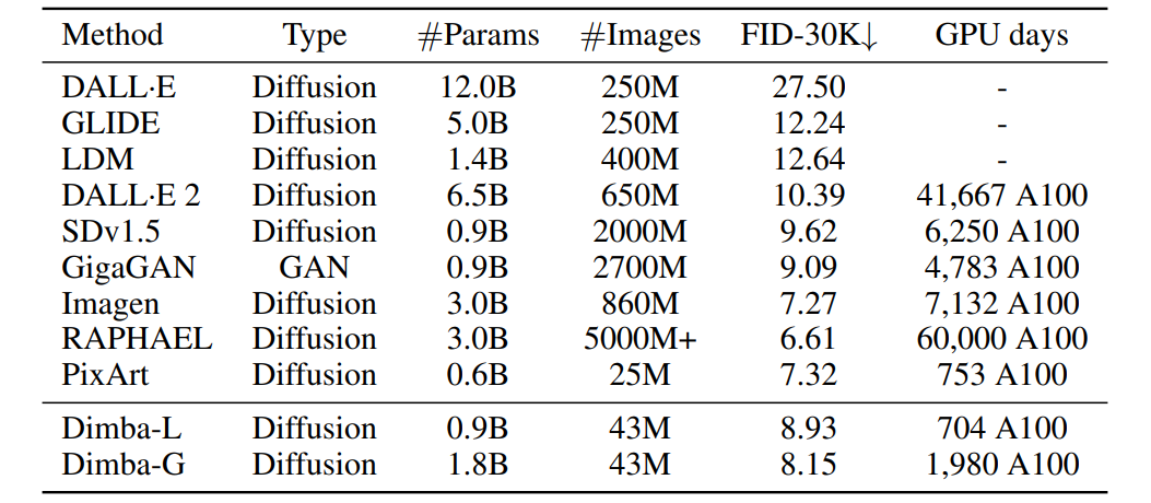 方法:Dimba 是一种全新的文本到图像扩散模型,它采用了一种结合了 Transformer 和 Mamba 元素的独特混合架构。具体来说,Dimba 在 Transformer 层和 Mamba 层之间交替顺序堆叠块,并通过交叉关注层整合条件信息,从而充分利用了两种架构范式的优势。