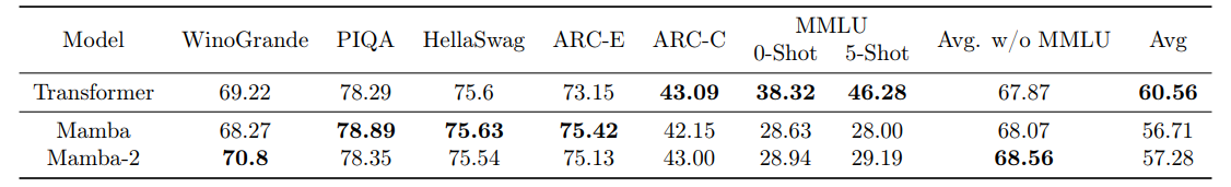 方法:本文主要研究了基于Mamba的选择性状态空间模型与Transformer模型的结合,提出了一种混合SSM-Transformer模型,即Mamba-2-Hybrid,通过将Mamba、自注意力和MLP层组合起来,在所有常见基准测试中都优于Transformer模型。