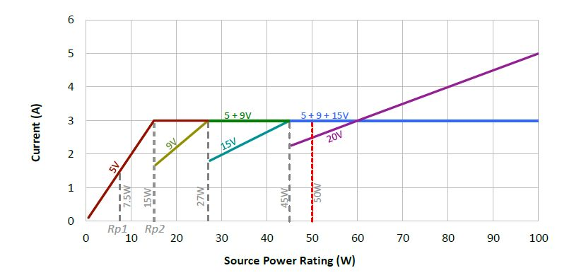 基本限制: 在不含电源传输协议的系统中,总线上的电流供应能力确实由Rp/Rd分压关系确定,但source端只会提供5V固定电压。