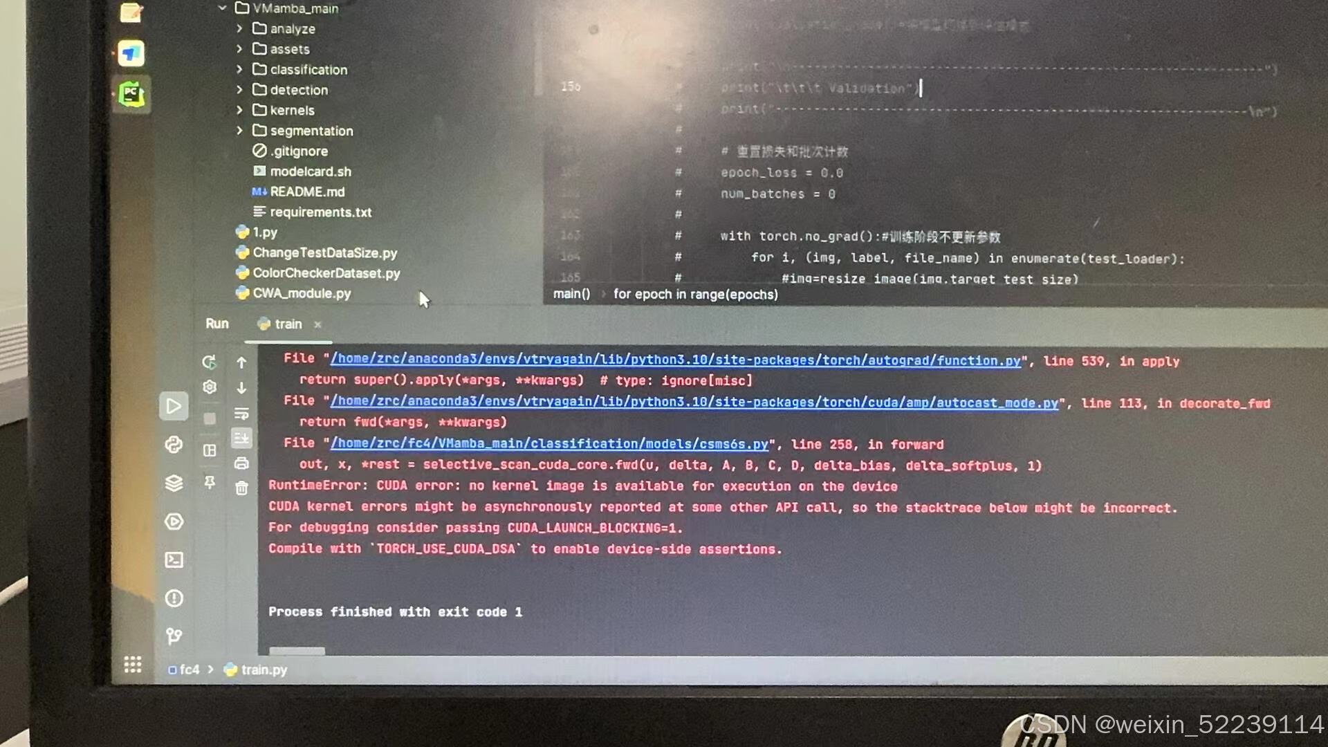 笔者反复尝试卸载安装不同版本的pytorch,但都无济于事。在运行train.py文件时报如下错误: