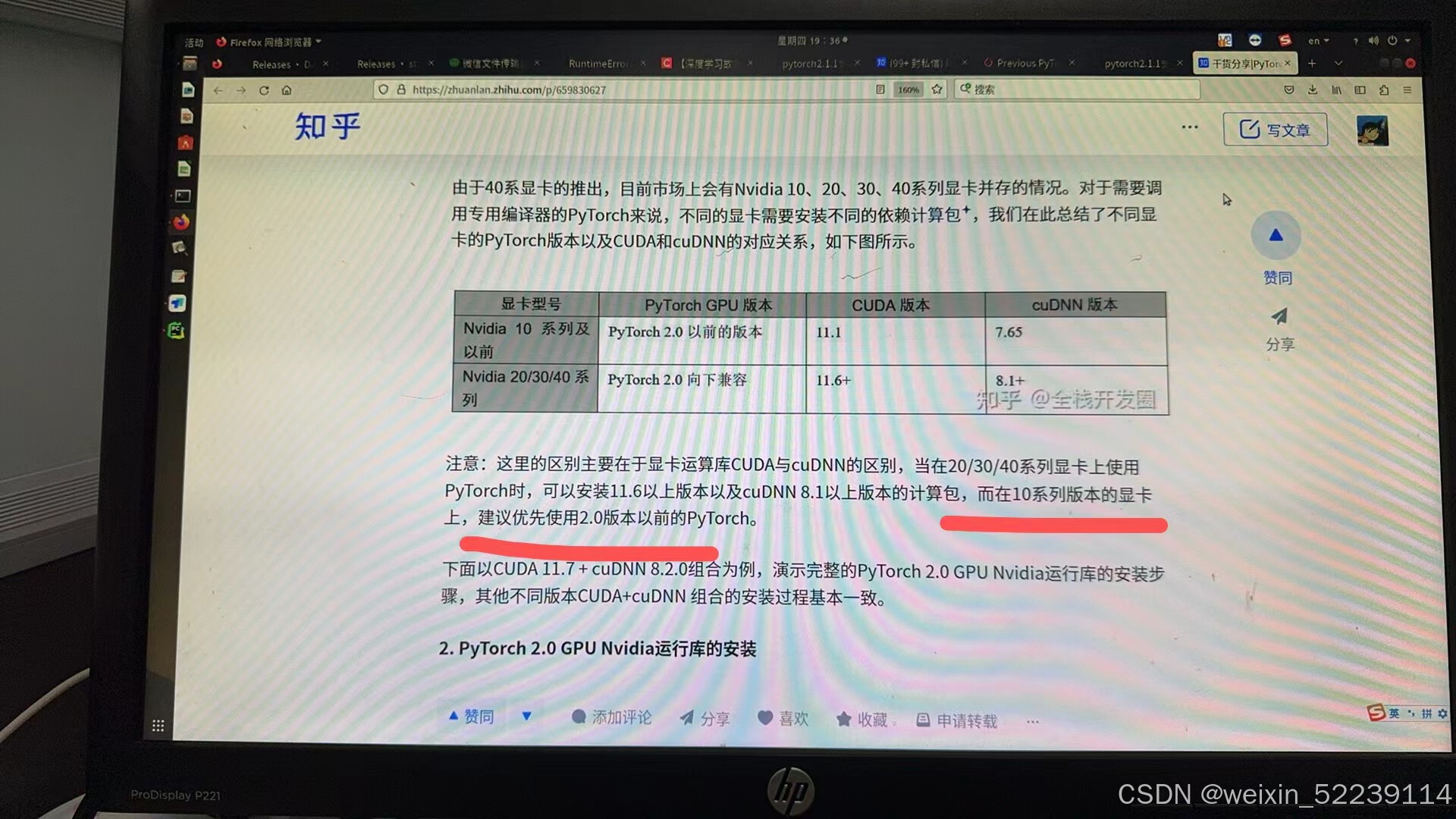 通过查阅资料,可知确实如猜测一样,10系列显卡最好使用2.0版本以前的torch。但是pytorch官网显示,2.0版本以前的torch最高支持cuda版本为11.7,然而我的cuda版本为11.8,这就又会导致版本不对应的问题。