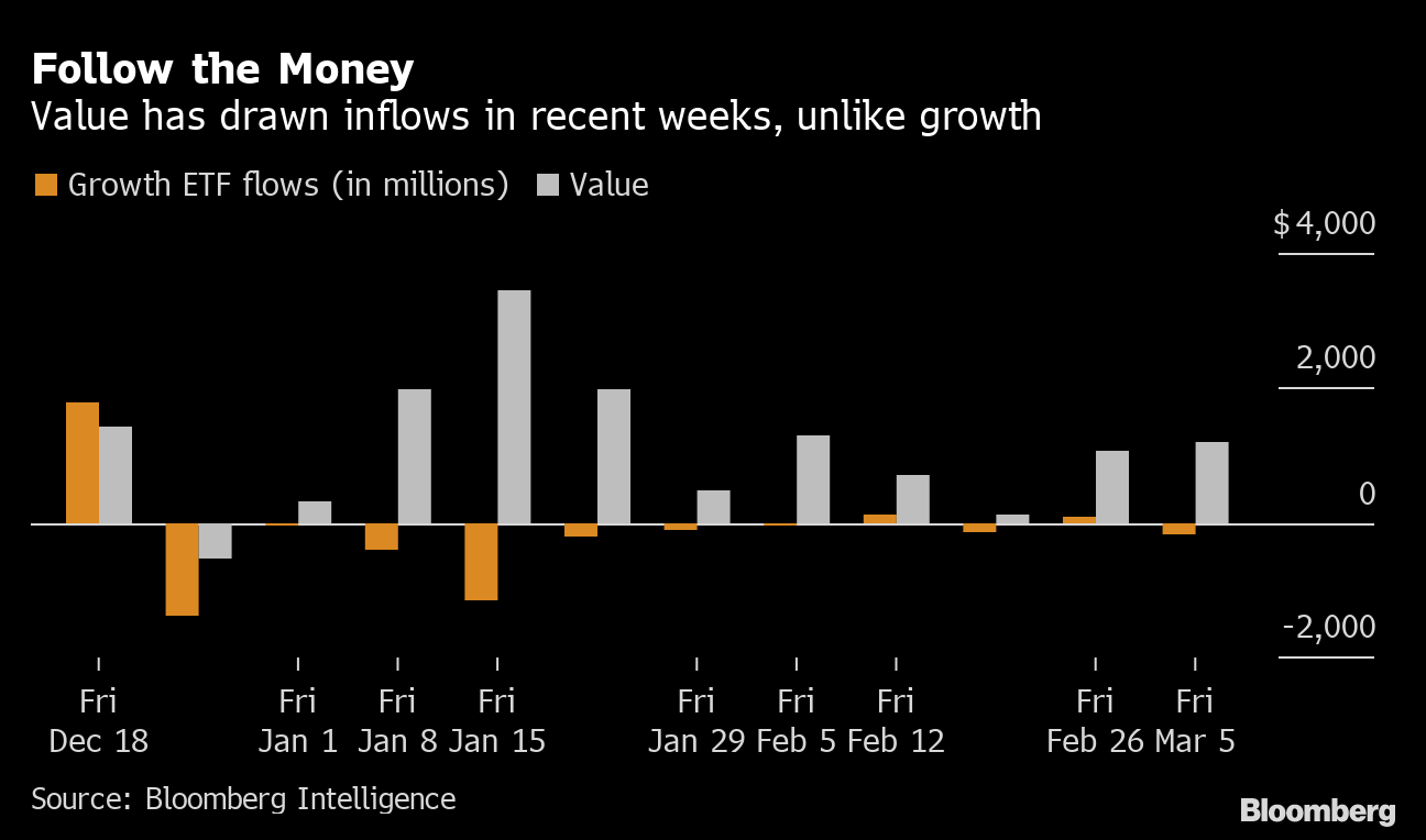 Now, economic optimism is dragging down havens like bonds, and rising yields are making the near-term cash flows of value equities ever-more attractive.