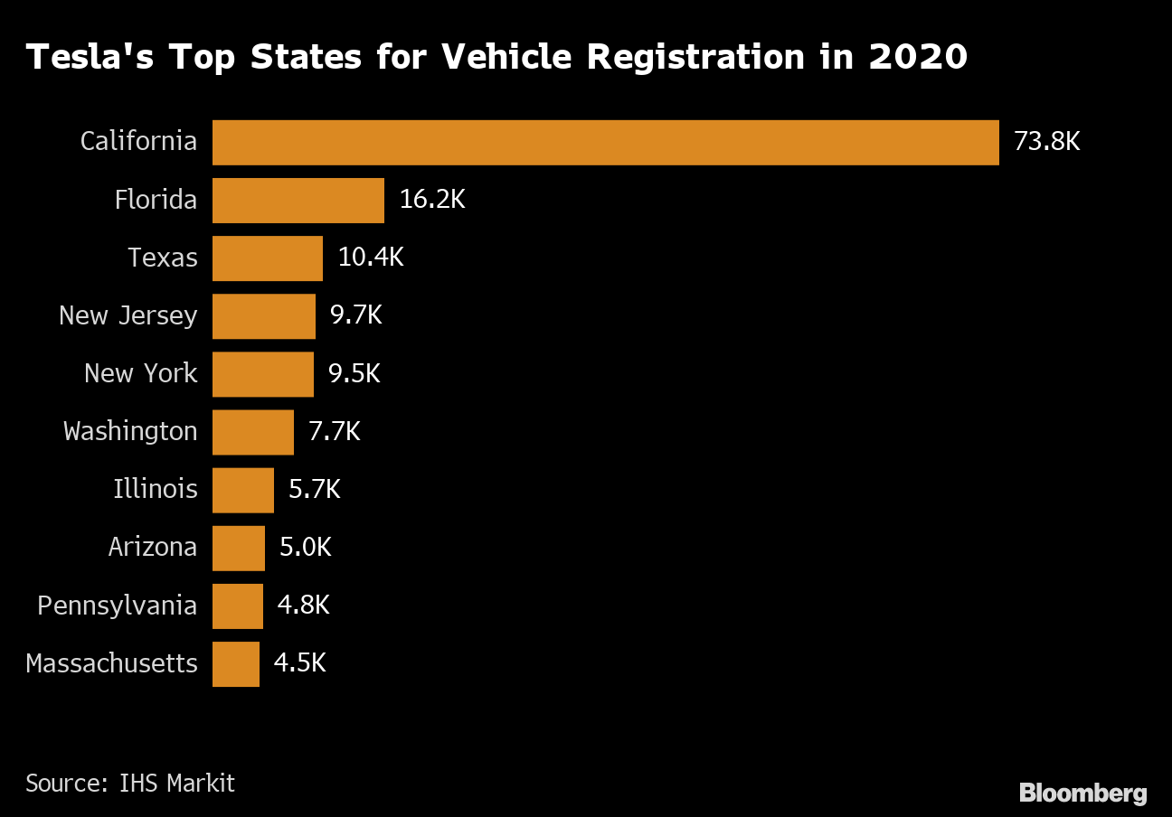 Tesla's Top States for Vehicle Registration in 2020