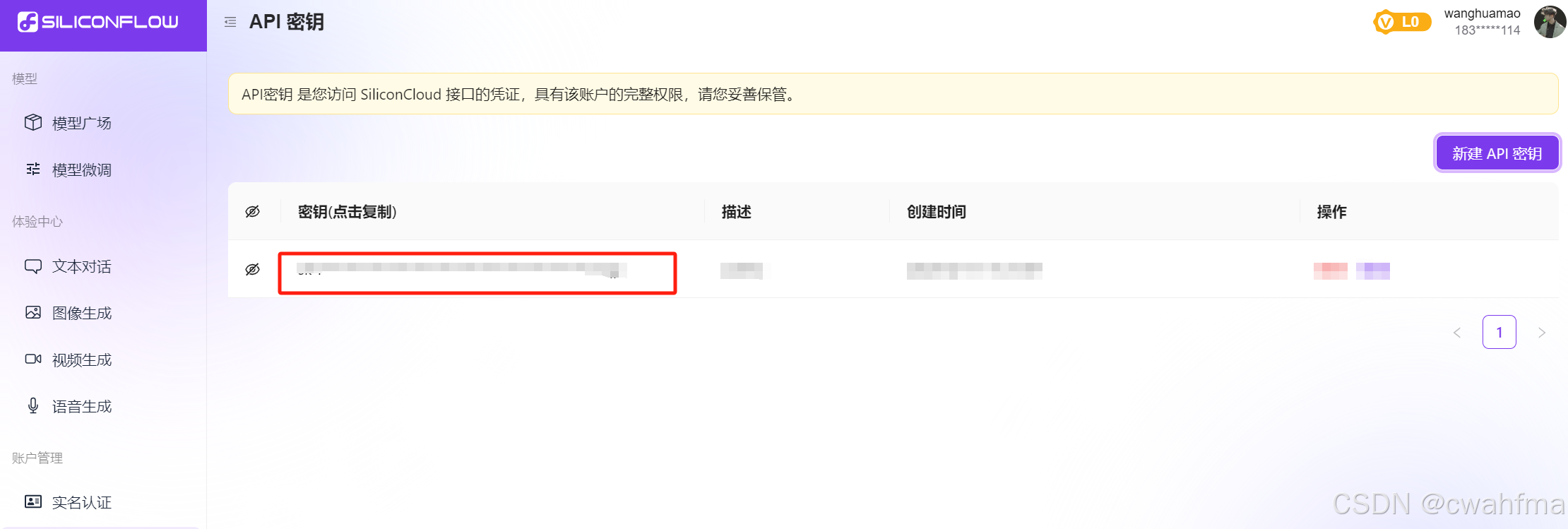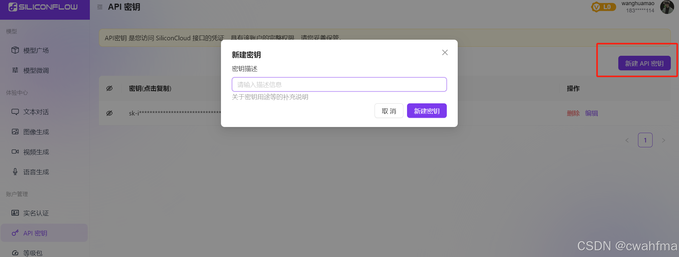 1.完成注册和实名认证后,点击API密钥 > 新建API密钥 (密钥描述可随意个人喜好)> 复制密钥