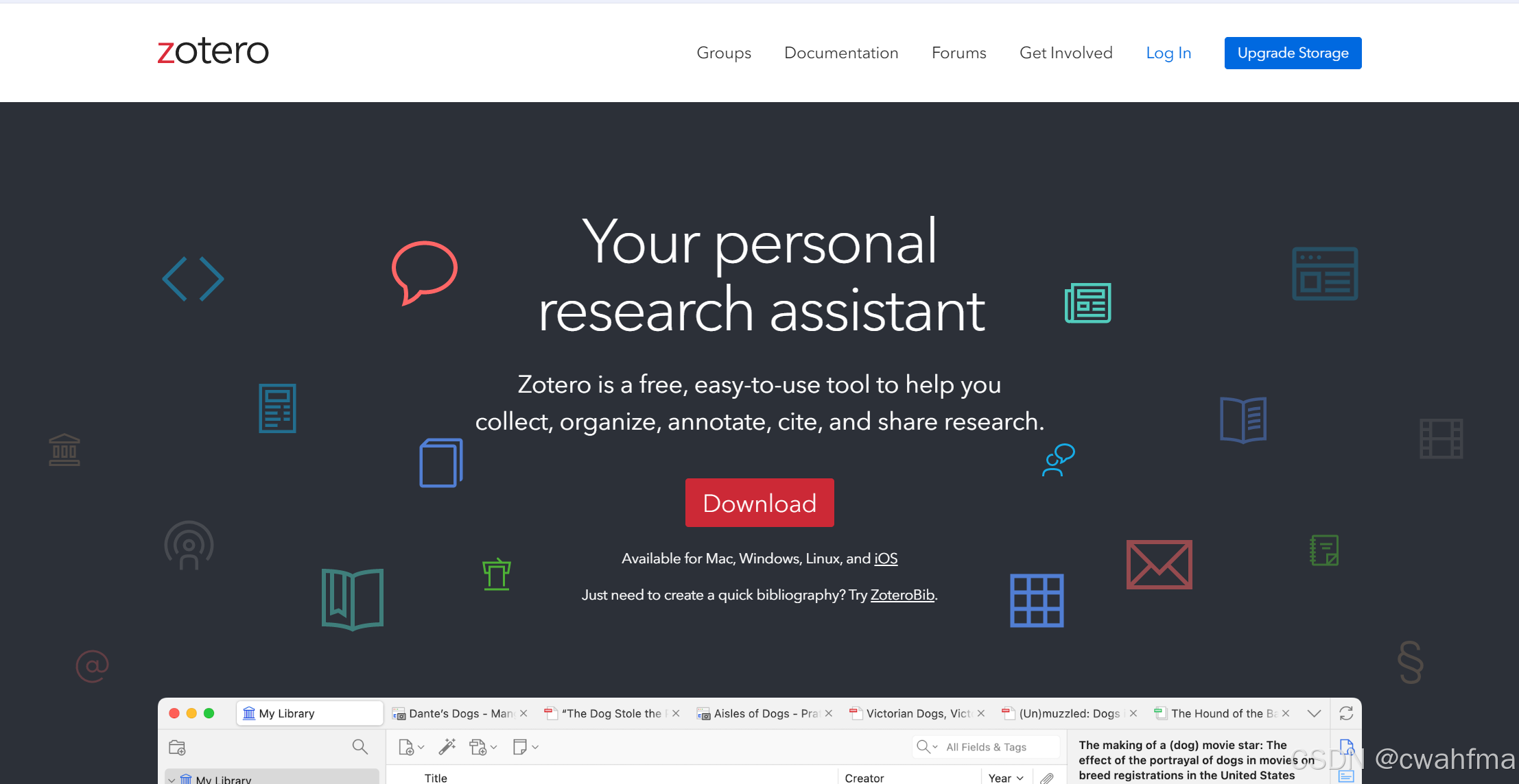 Zotero 是一款专为学术研究设计的开源文献管理工具。它能高效管理文献(支持PDF、网页、书籍等多格式),用户可通过标签系统、文件夹层级和全文检索快速定位文献,还可支持使用各种的插件。