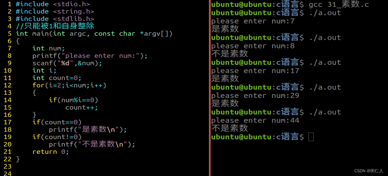素数:只能被1和本身整除