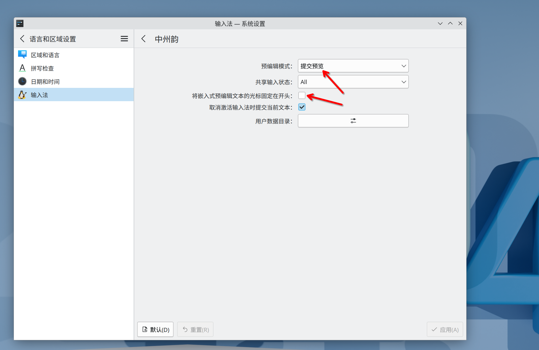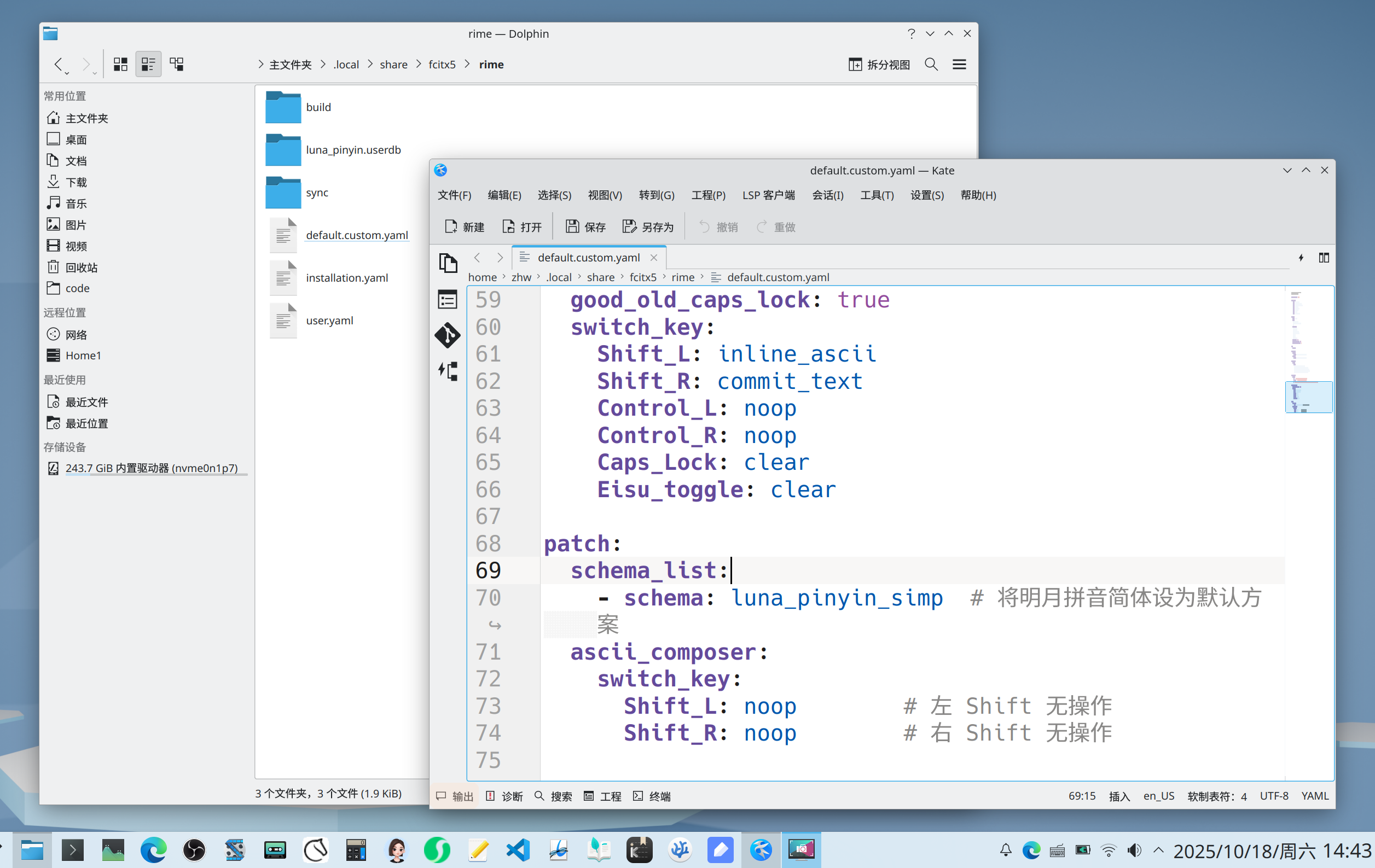 kubuntu24.04自带fcitx5框架和输入法,但rime输入更好。
